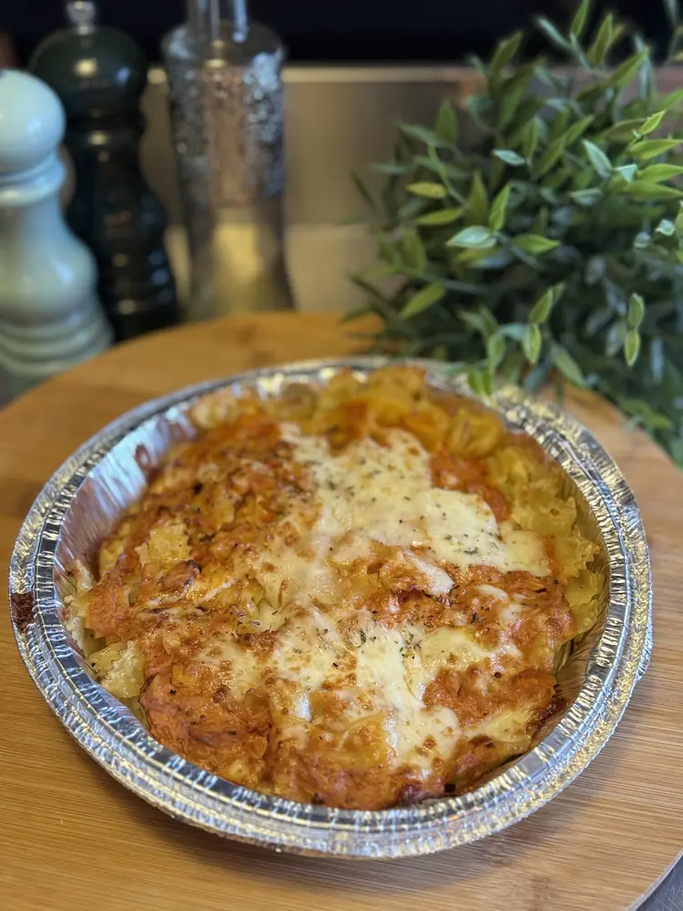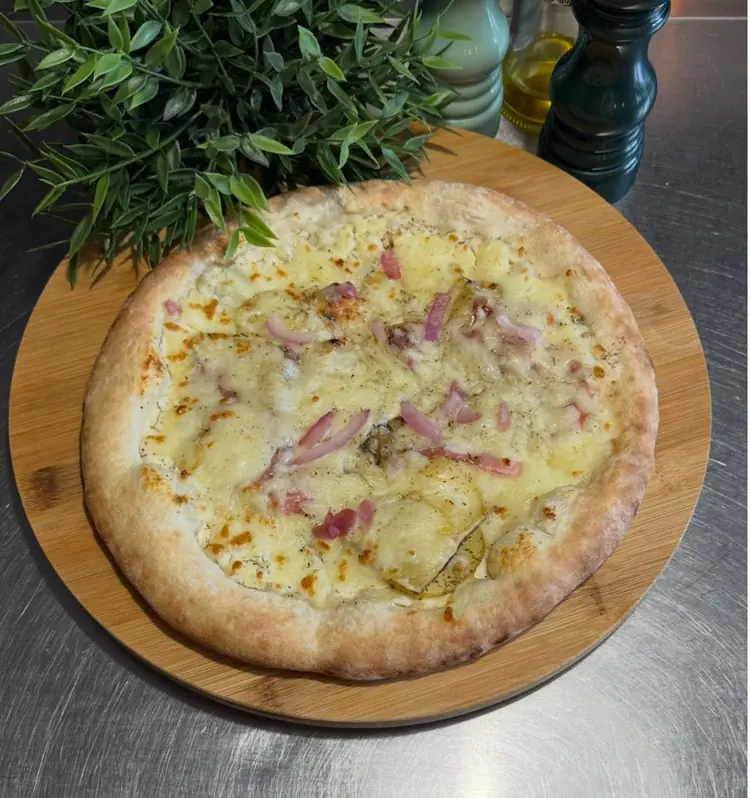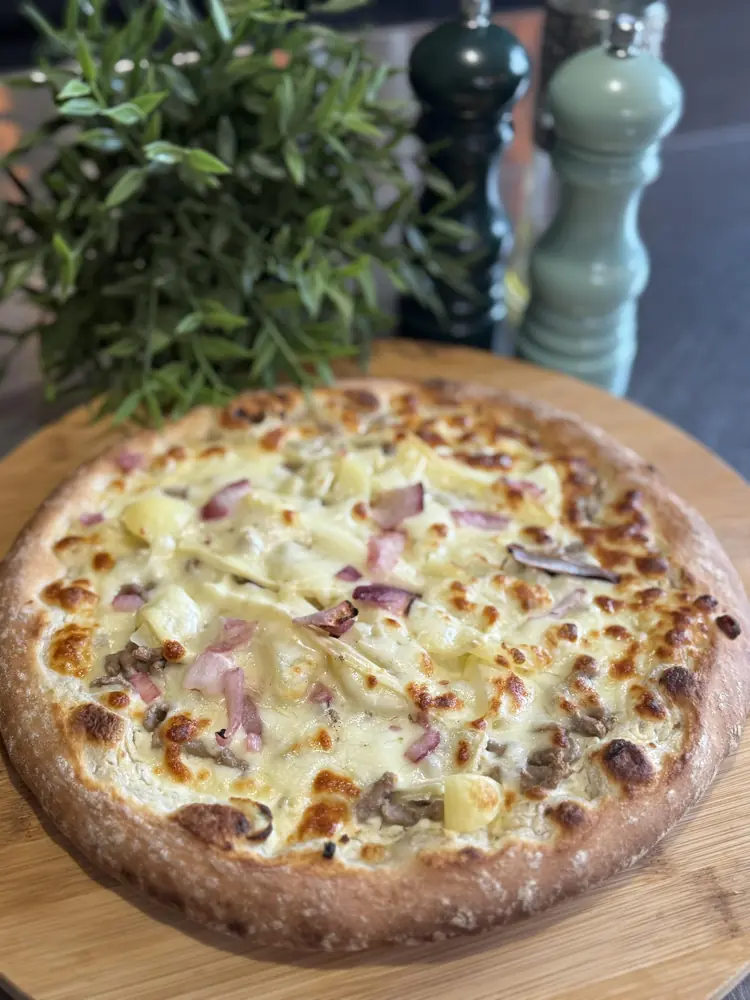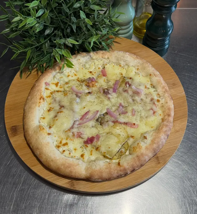 une création onctueuse à base de crème fraîche, mozzarella, jambon blanc, champignons de Paris frais et une touche d’huile d’olive à la truffe.
