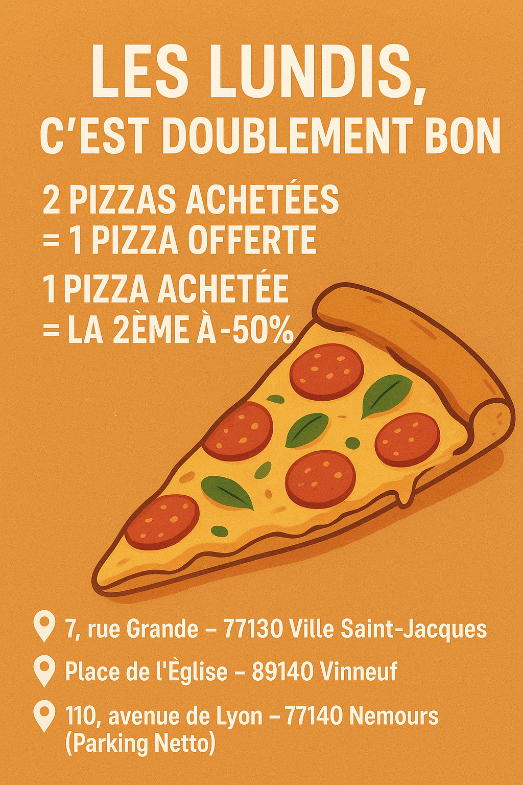 Désormais, 1 Pizza achetée = 1pizza à -50%